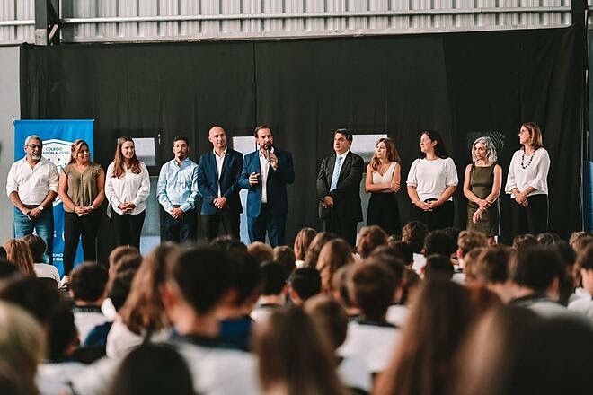 “Esta obra es resultado de un proceso que implica el compromiso de un equipo directivo y de una gestión municipal que, en conjunto con el gobierno de la Provincia, decide invertir en nuestras escuelas porque sabemos que cuando se transforma el edificio escolar, mejoran las condiciones de estudio y también las condiciones laborales”, expresó Sujarchuk, quien estuvo acompañado por el secretario de Gobierno, Leo Moreno, la subsecretaria de Educación, Victoria Serruya, y la presidenta del Honorable Concejo Deliberante, María Laura Guazzaroni. .