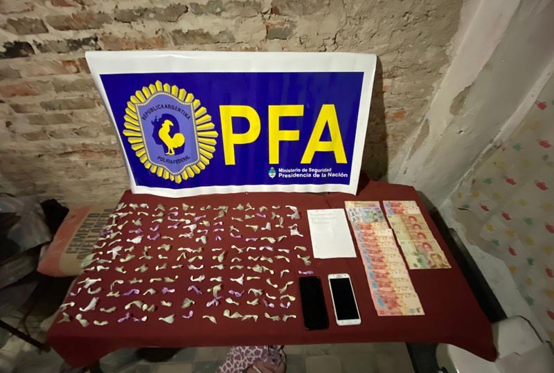 "El mismo arrojó resultado positivo procediéndose al secuestro de 149 envoltorios de nylon los cuales contenían sustancia pulverulenta de color blanca similar al clorhidrato de cocaína, dinero en efectivo, teléfonos celulares y documentación de interés para la causa", indicaron fuentes de la Policía Federal.