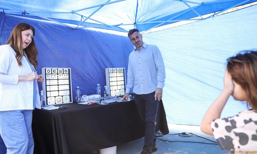 El intendente participó de un nuevo operativo de control oftalmológico destinado a niños, en Lagomarsino. El plan prevé la entrega de anteojos para los que los necesiten.
